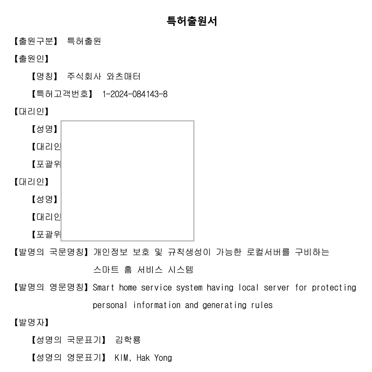 저희 와츠매터(대표 김학용)는 지난 11월 "모두스홈 Modus Home"에 대한 상표권을 출원한 지 한달 만에 온디바이스 AI 및 매터 허브와 관련된 특허를 출원하였습니다. 올해 수행한 지능형 홈 관련 실증 사업의 결과물인데요, 클라우드 기반의 스마트홈 플랫폼 없이도 스마트홈 서비스를 제공하는 방법을 제시하고 있습니다.