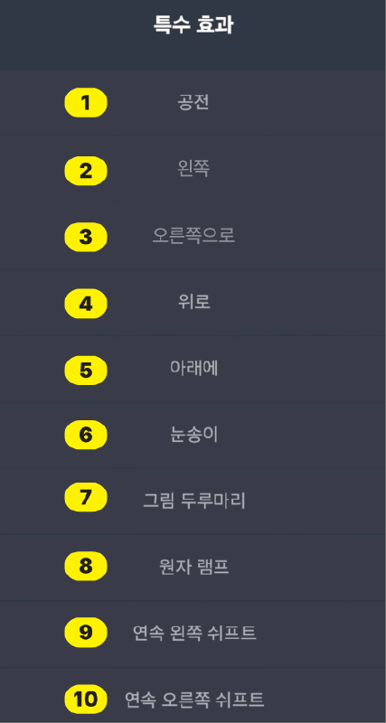 | 3 | 특수 효과 | 애니메이션 효과를 설정합니다. |