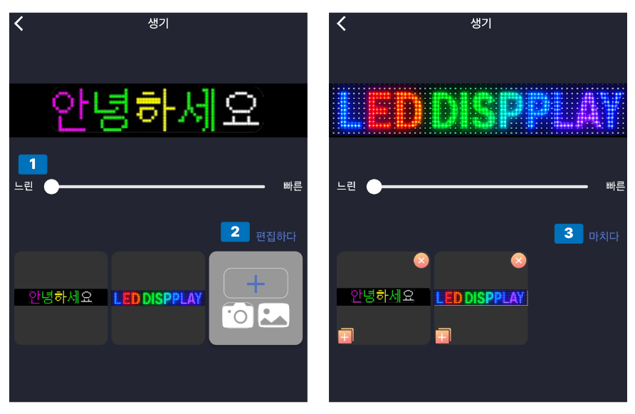 스마트폰 앨범에서 원하는 이미지를 불러와 여러가지 기능들을 통해서 LED 디스플레이에 추가할 수 있습니다.