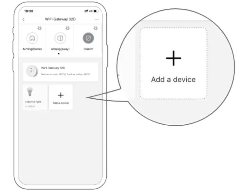 2. 삼성, 애플, 구글과 같은 스마트홈 플랫폼 앱을 열고 [기기추가(Add a device)] 버튼을 선택합니다.