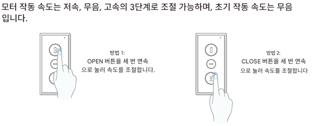 일반 커튼처럼 사람의 힘으로 직접 열고 닫는 것은 불가합니다.