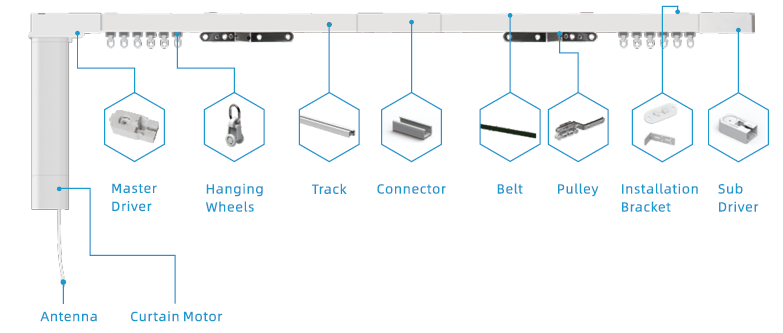 A. 일반 커튼, 암막 커튼, 긴 레일 커튼까지 대부분 호환됩니다.