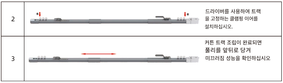 A. 기존 커튼 레일은 제거하고, 제품에 포함된 전용 레일을 이용해야 합니다.