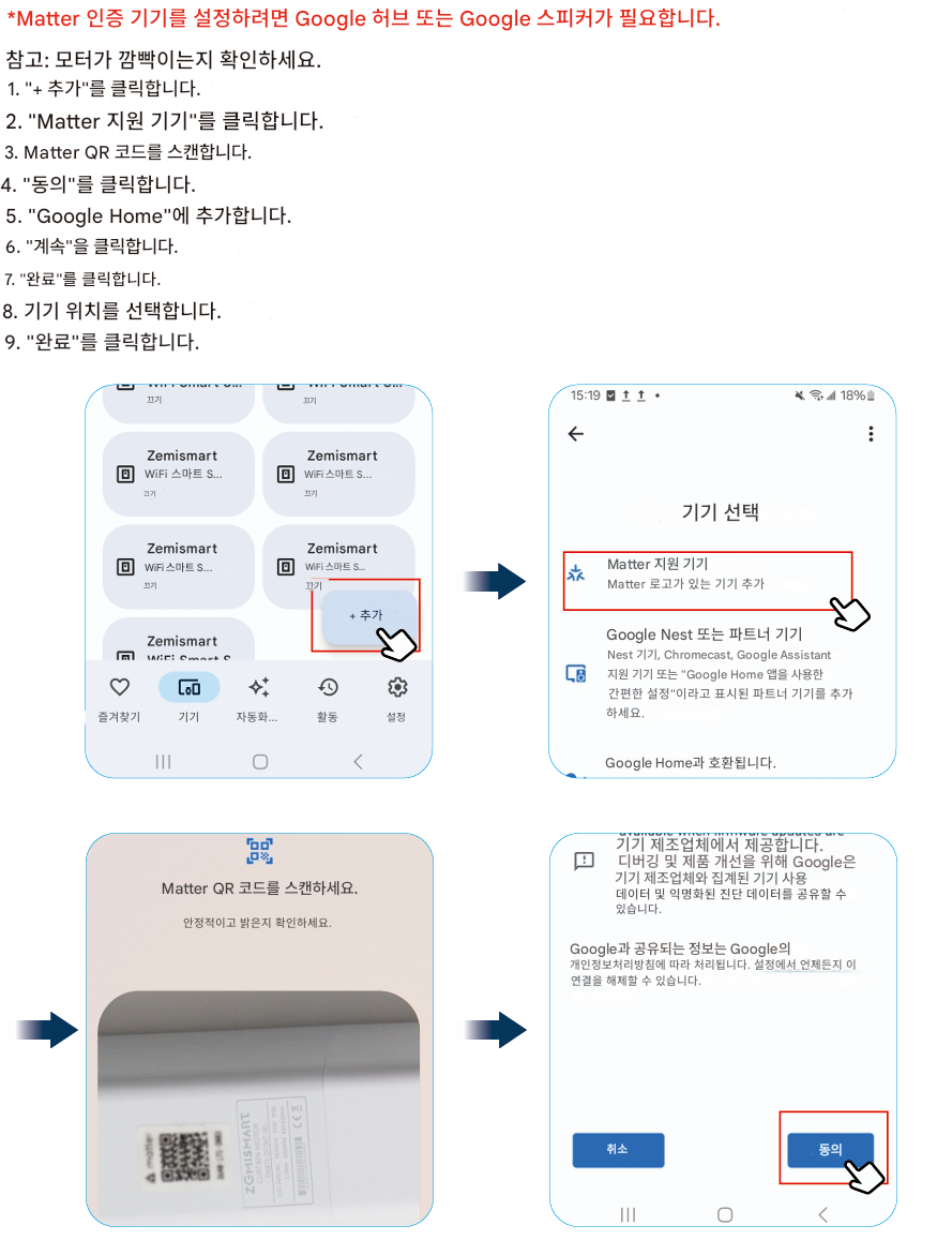 A. 네, 모터를 Matter 기반 스마트 홈 앱에 연결하려면 휴대폰의 Wi-Fi를 켜야 합니다.